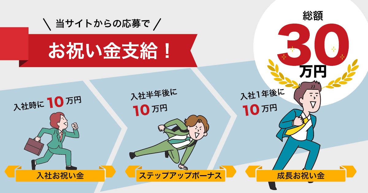 【先着3名!3月末まで】入社お祝い金 総額30万円プレゼントキャンペーン!